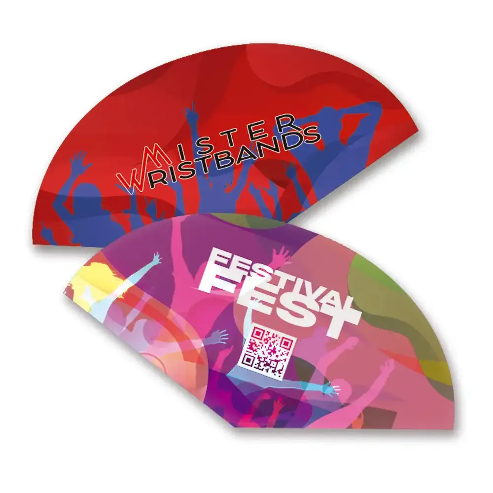 Abanicos de cartón personalizados, impresos en papel estucado 350g a todo color en ambas caras y troquelado en forma de abanico. Nuestros Abanicos de cartón son ideales para cualquier tipo de eventos en verano.